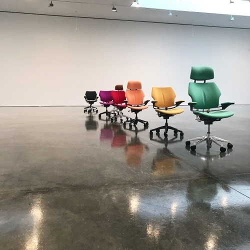 Choreographer? What? At first glance this exhibition looks like a room full of chairs. And not just chairs...office chairs.